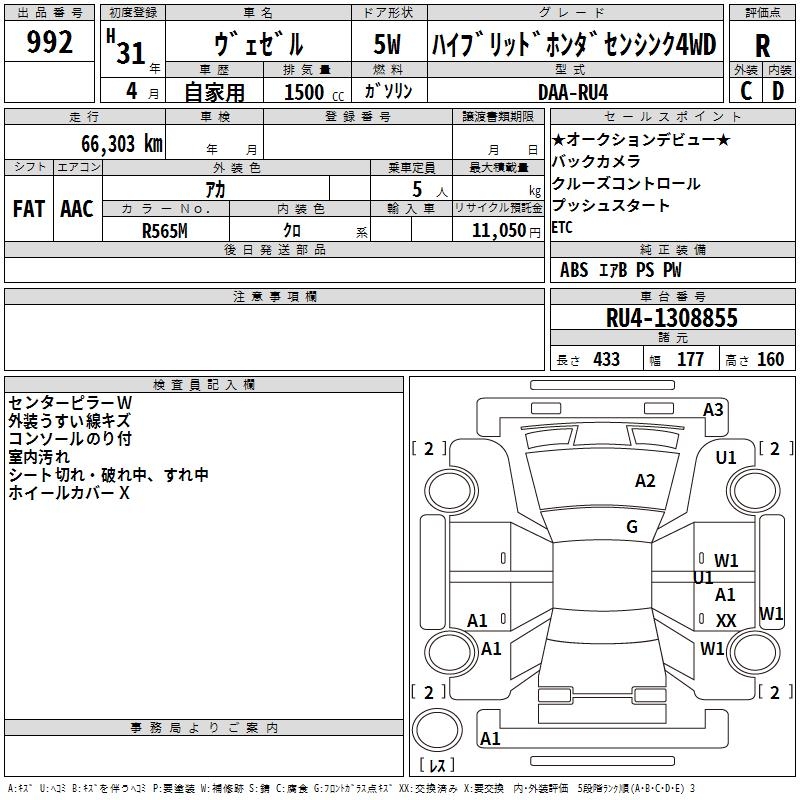 HONDA VEZEL - лот 992
