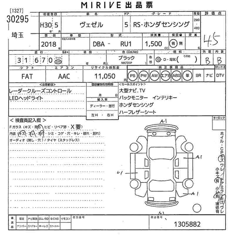 HONDA VEZEL - лот 30295