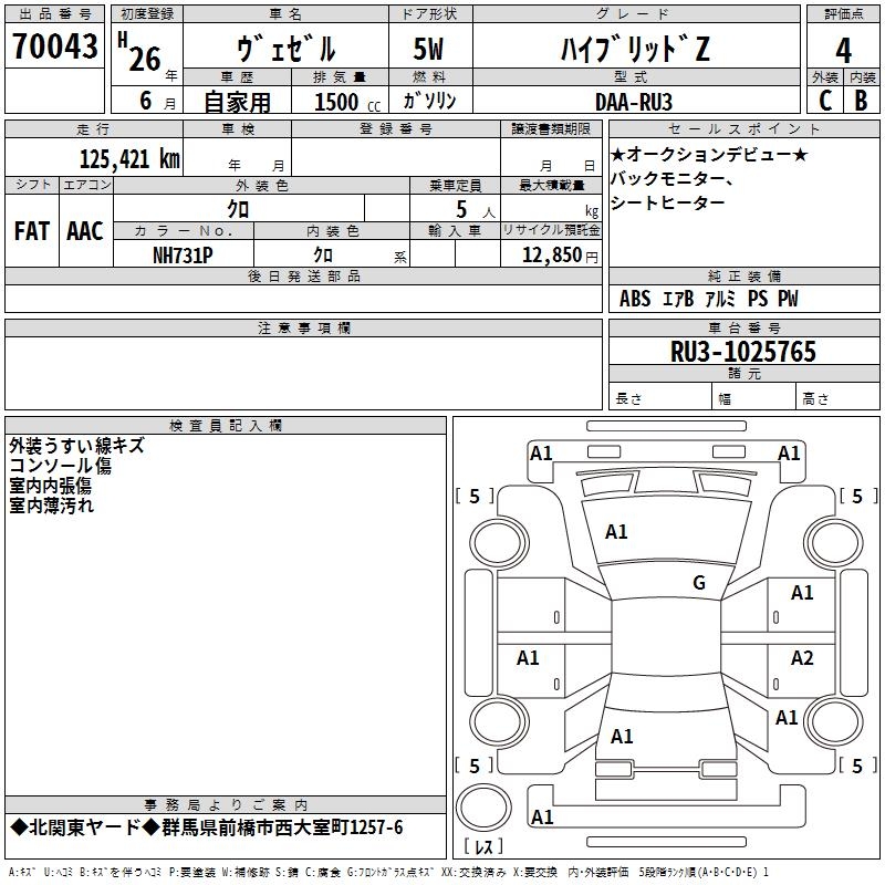 HONDA VEZEL - лот 70043