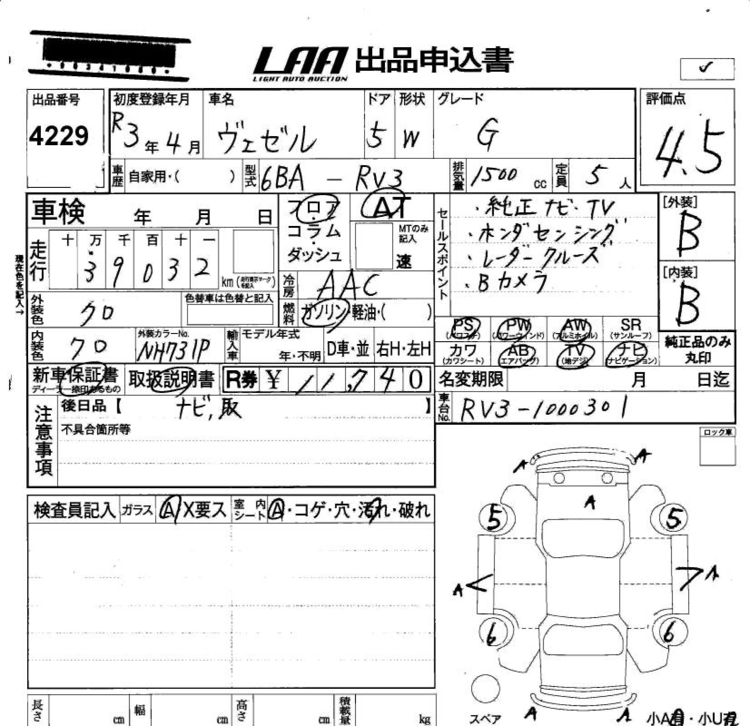 HONDA VEZEL - лот 4229