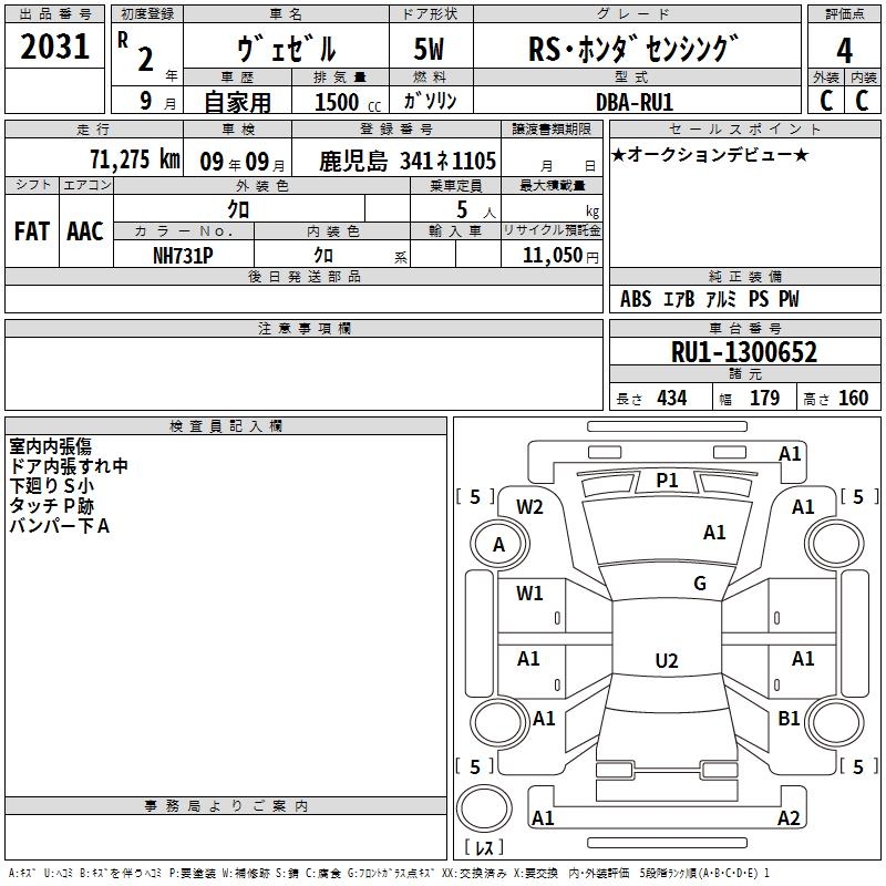 HONDA VEZEL - лот 2031