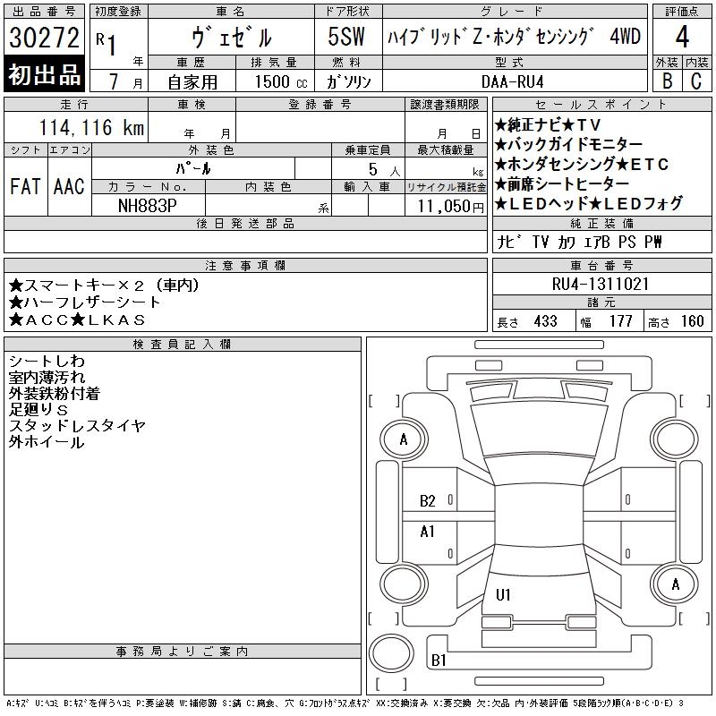HONDA VEZEL - лот 30272