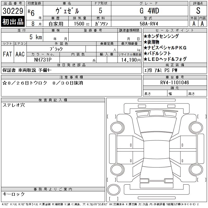 HONDA VEZEL - лот 30229
