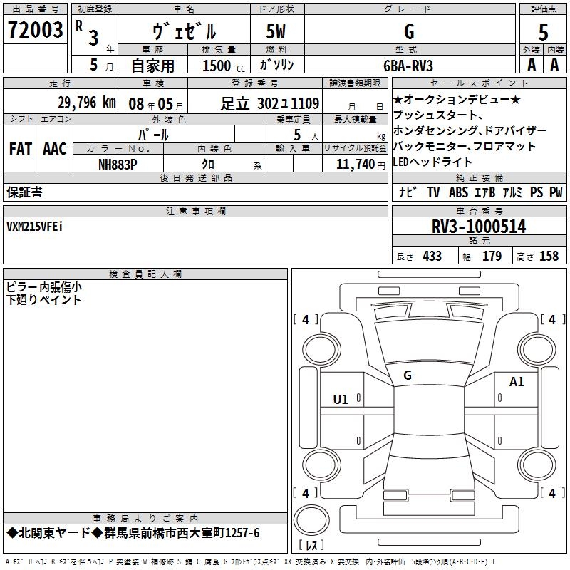 HONDA VEZEL - лот 72003