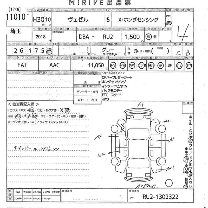 HONDA VEZEL - лот 11010