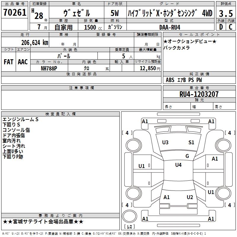 HONDA VEZEL - лот 70261