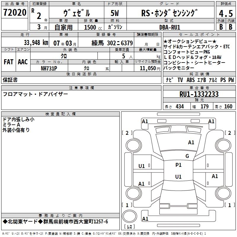 HONDA VEZEL - лот 72020