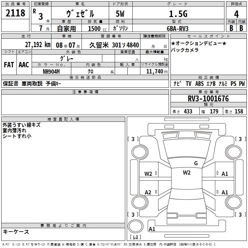 HONDA VEZEL 1.5G - лот 2118