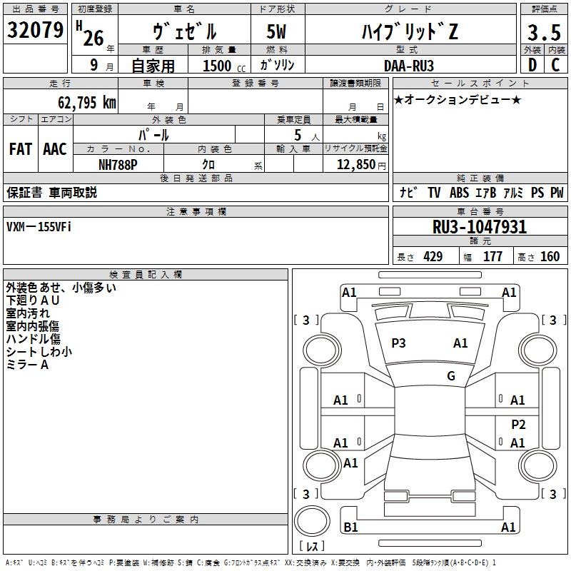 HONDA VEZEL HYBRID Z - лот 32079