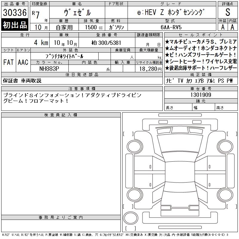 HONDA VEZEL E:HEV Z HONDA SENSING - лот 30336