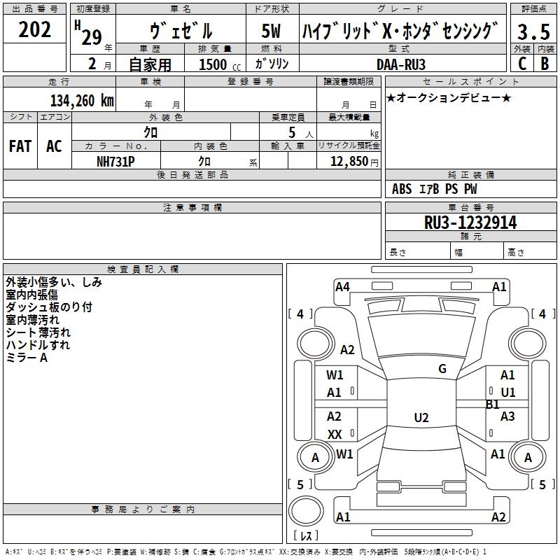 HONDA VEZEL HYBRID X* HONDA SENSING - лот 202