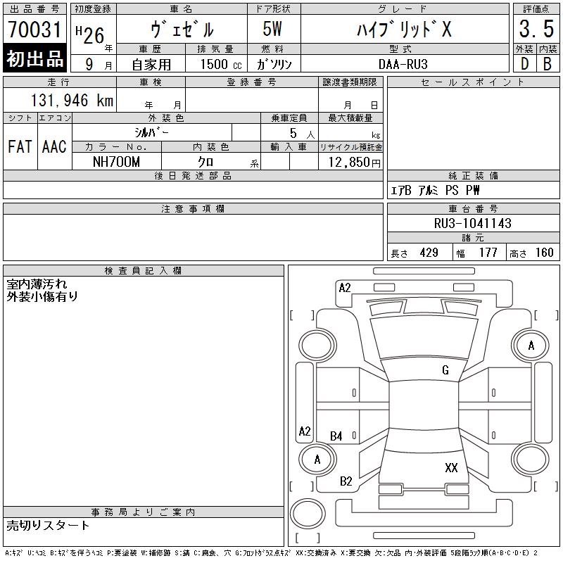 HONDA VEZEL HYBRID X - лот 70031