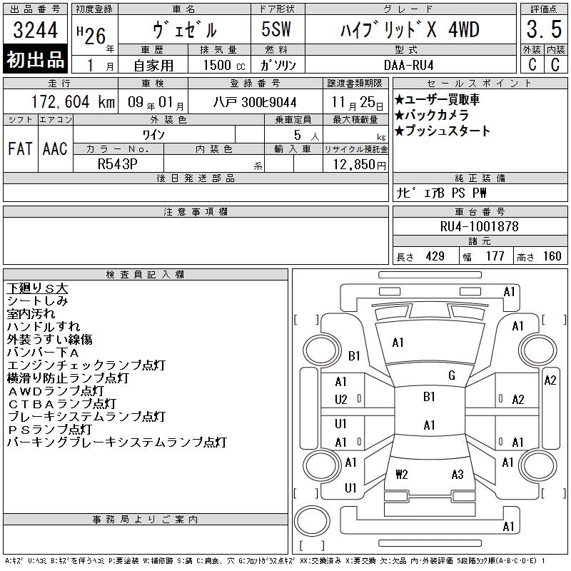 HONDA VEZEL HYBRID X 4WD - лот 3244