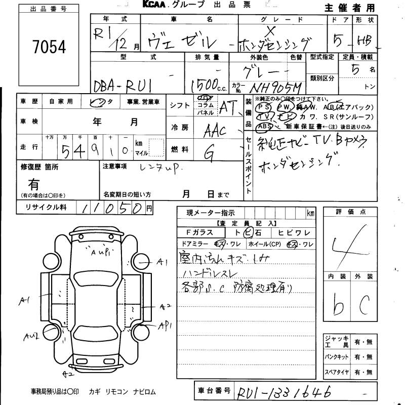 HONDA VEZEL X* HONDA SENSING - лот 7054