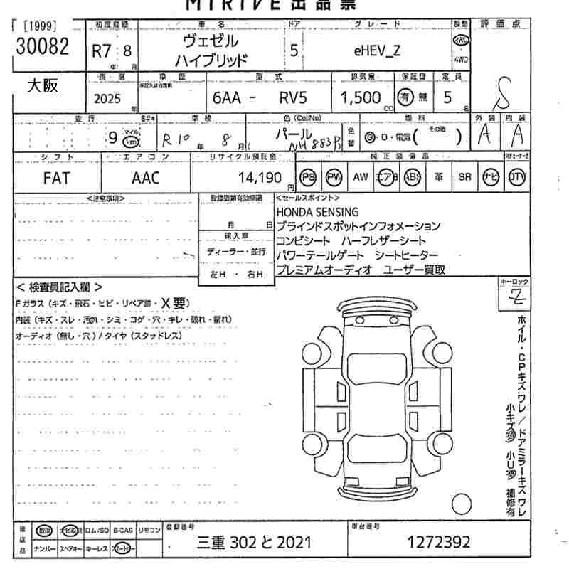 HONDA VEZEL eHEV_Z - лот 30082