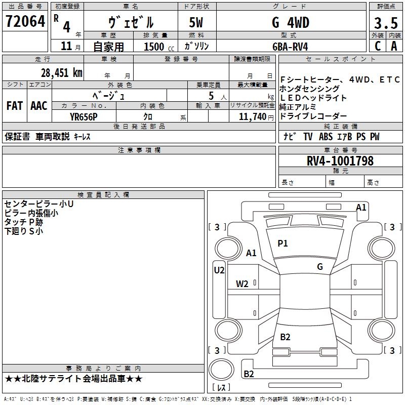HONDA VEZEL G 4WD - лот 72064