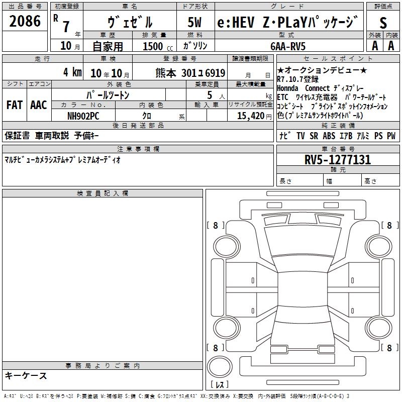 HONDA VEZEL E:HEV Z*PLAY PACKAGE - лот 2086