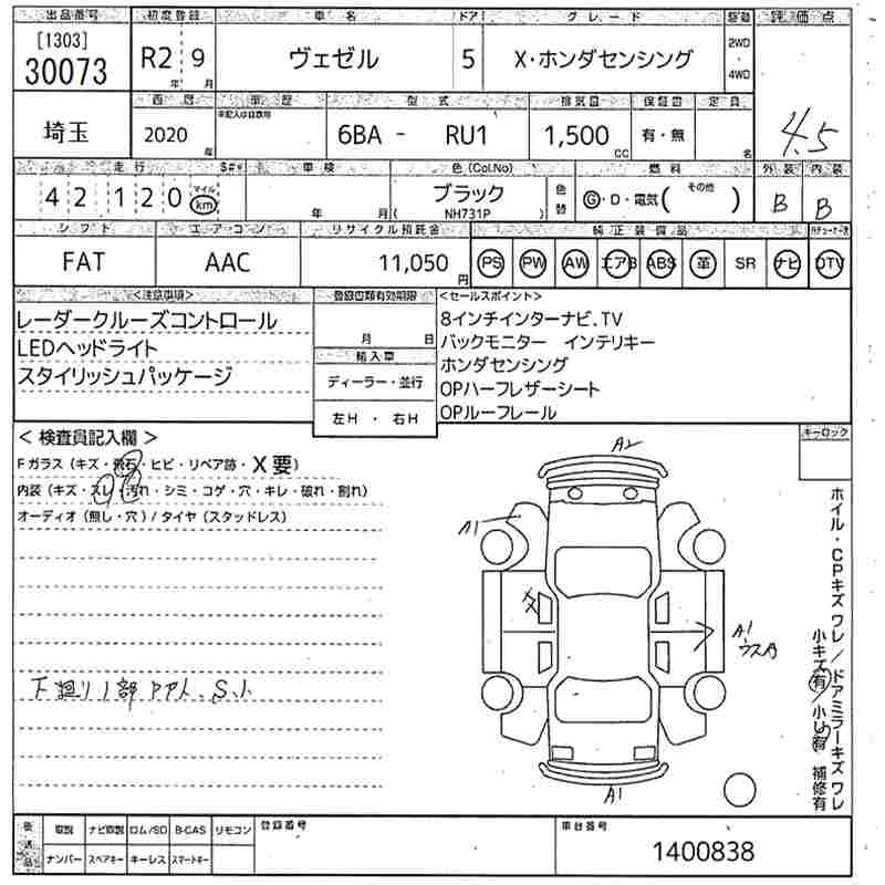 HONDA VEZEL X* HONDA SENSING - лот 30073