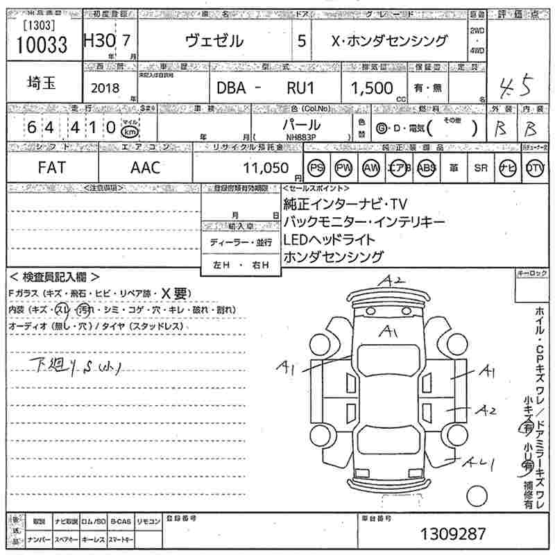 HONDA VEZEL X* HONDA SENSING - лот 10033