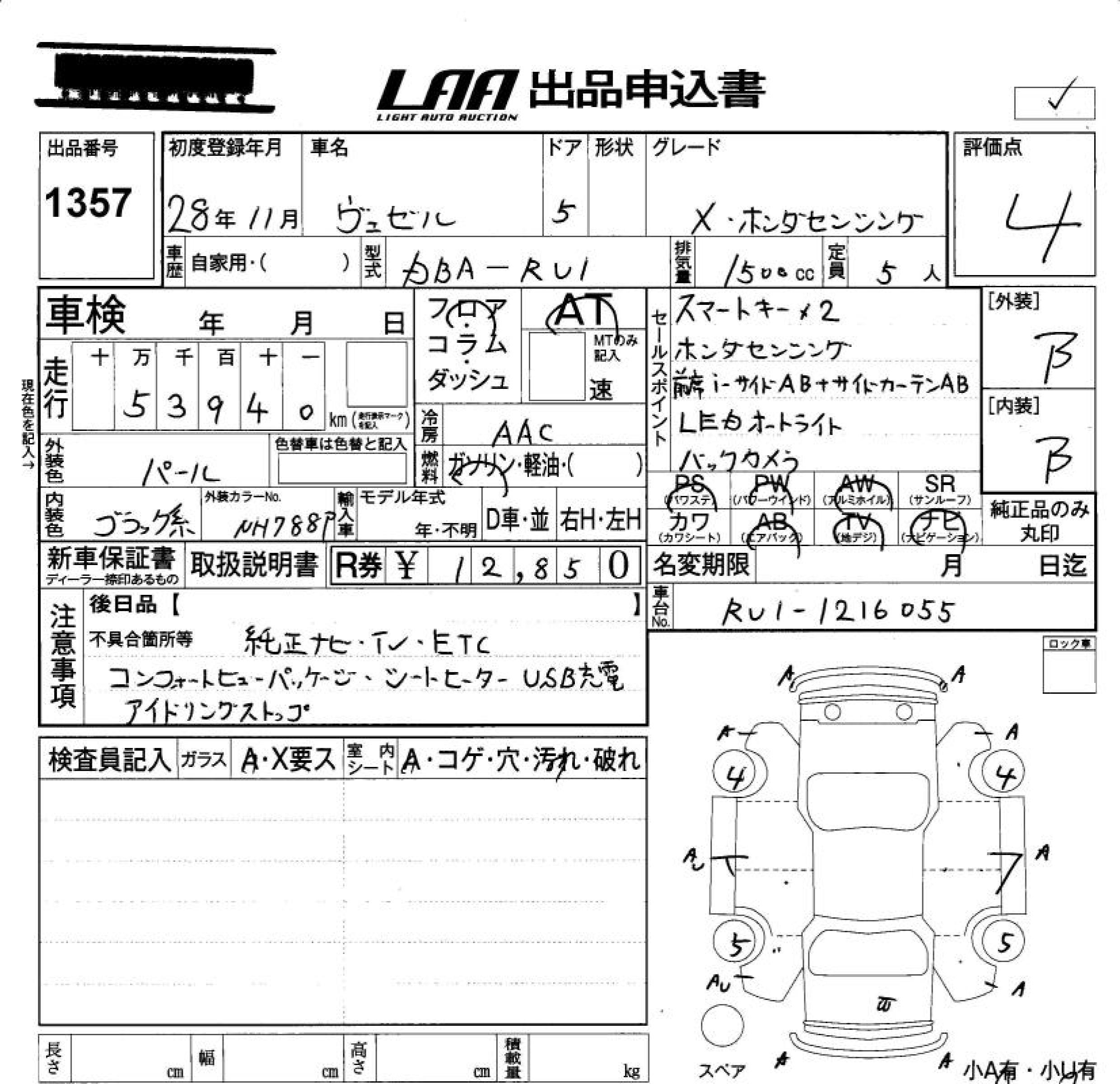 HONDA VEZEL X* HONDA SENSING - лот 1357