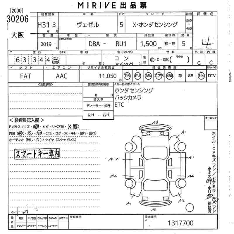 HONDA VEZEL X* HONDA SENSING - лот 30206