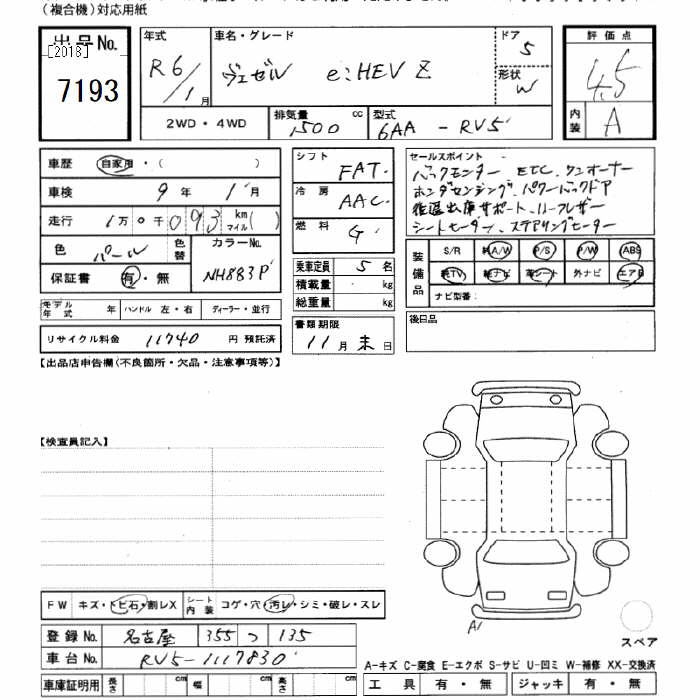 HONDA VEZEL e:HEV Z - лот 7193