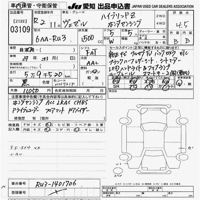 HONDA VEZEL HYBRID Z HONDA SENSING - лот 3109