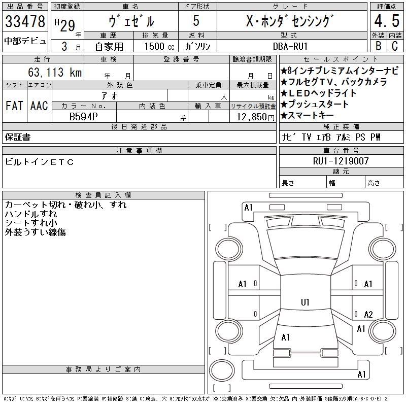 HONDA VEZEL X* HONDA SENSING - лот 33478