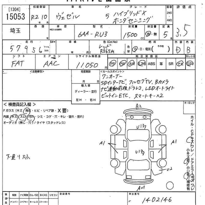 HONDA VEZEL HYBRID X* HONDA SENSING - лот 15053