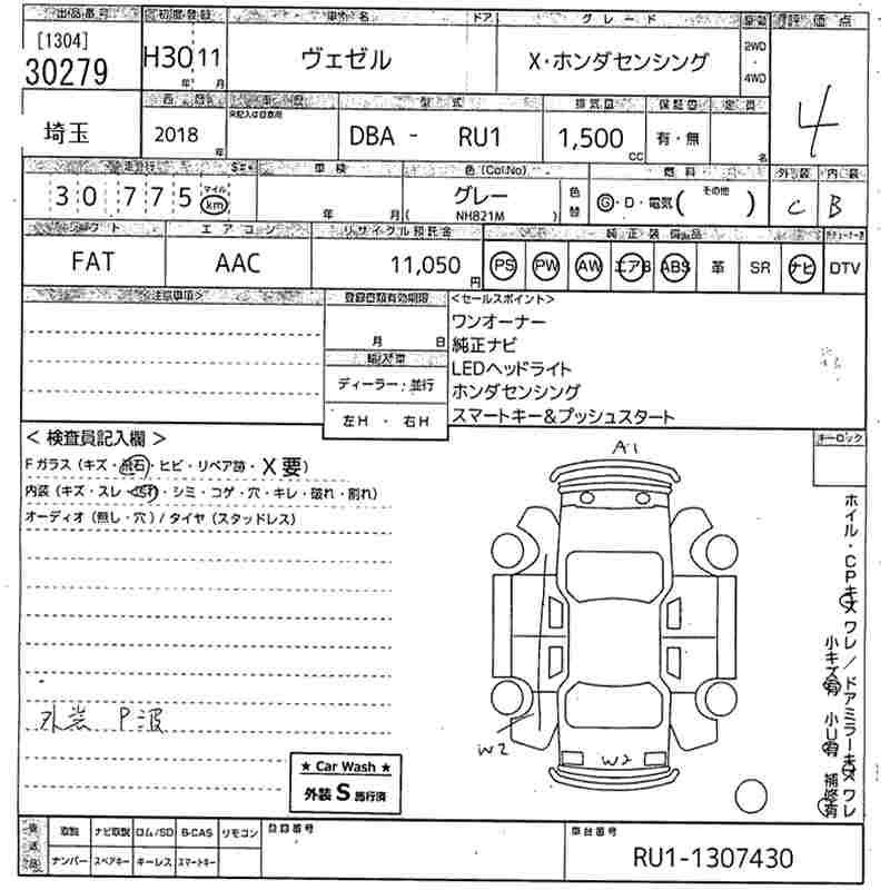HONDA VEZEL X* HONDA SENSING - лот 30279