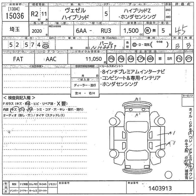 HONDA VEZEL HYBRID Z* HONDA SENSING - лот 15036