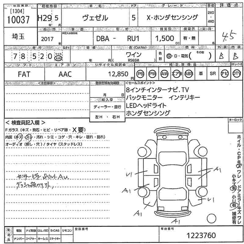 HONDA VEZEL X* HONDA SENSING - лот 10037