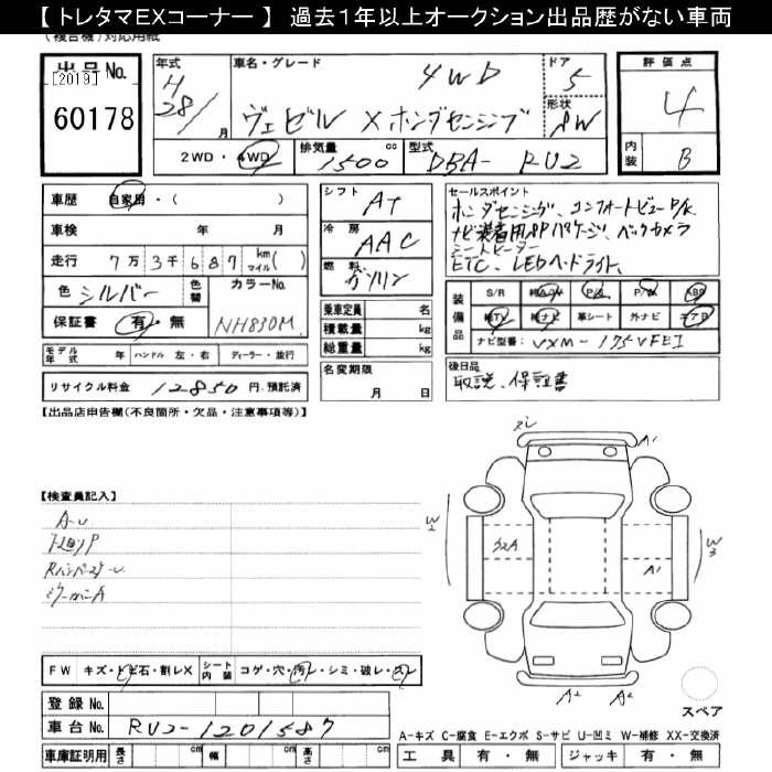HONDA VEZEL 4WD X HONDA SENSING - лот 60178