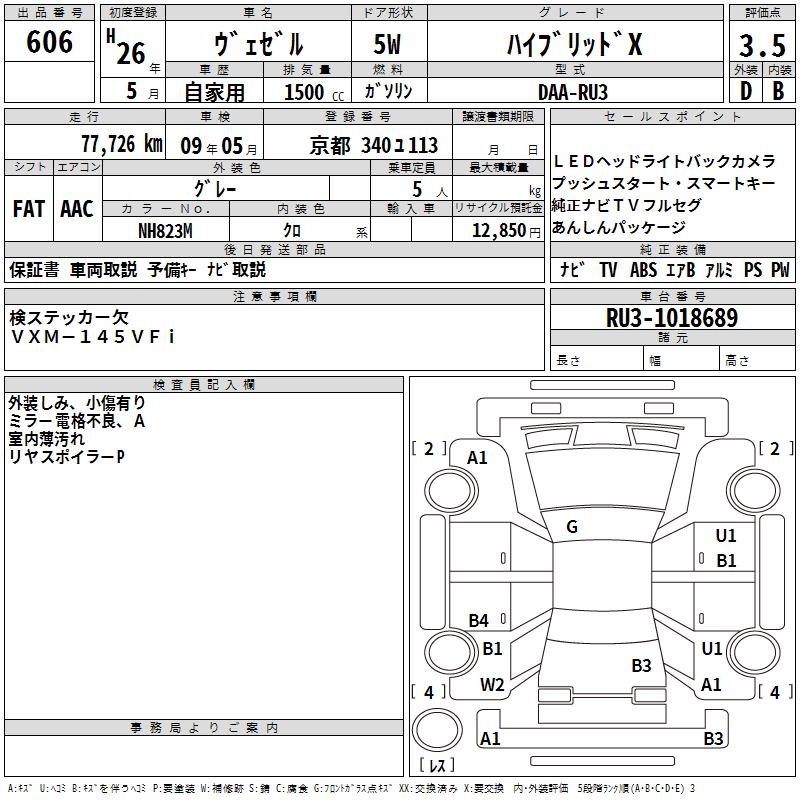 HONDA VEZEL HYBRID X - лот 606