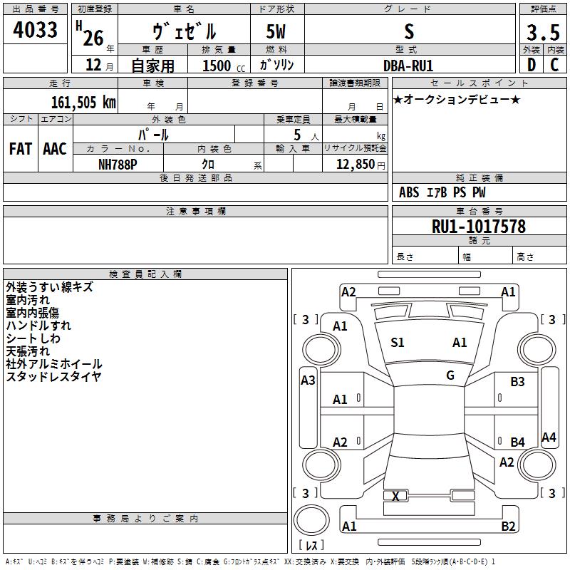 HONDA VEZEL S - лот 4033