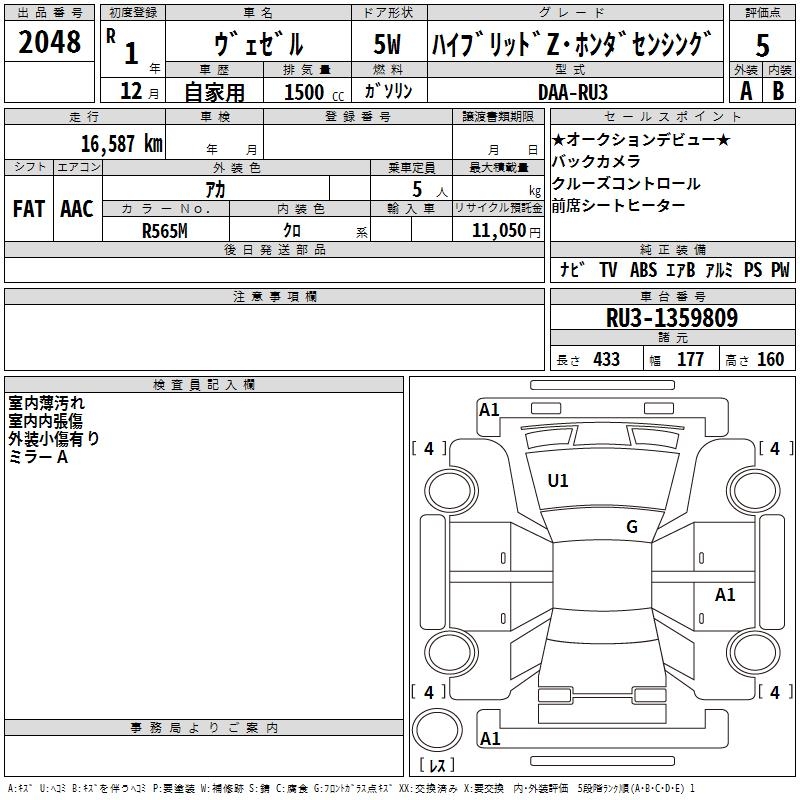 HONDA VEZEL - лот 2048