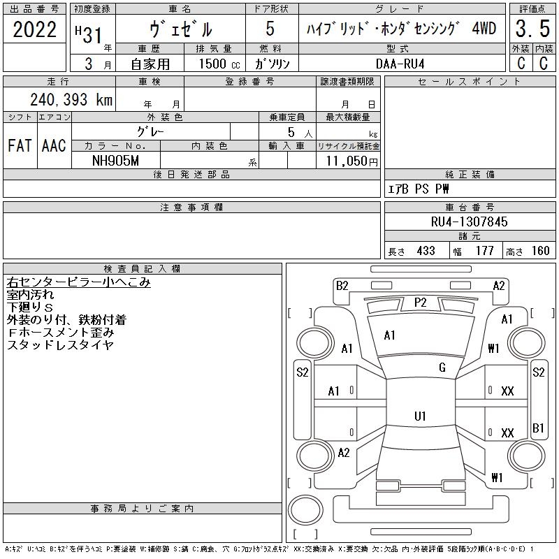 HONDA VEZEL - лот 2022