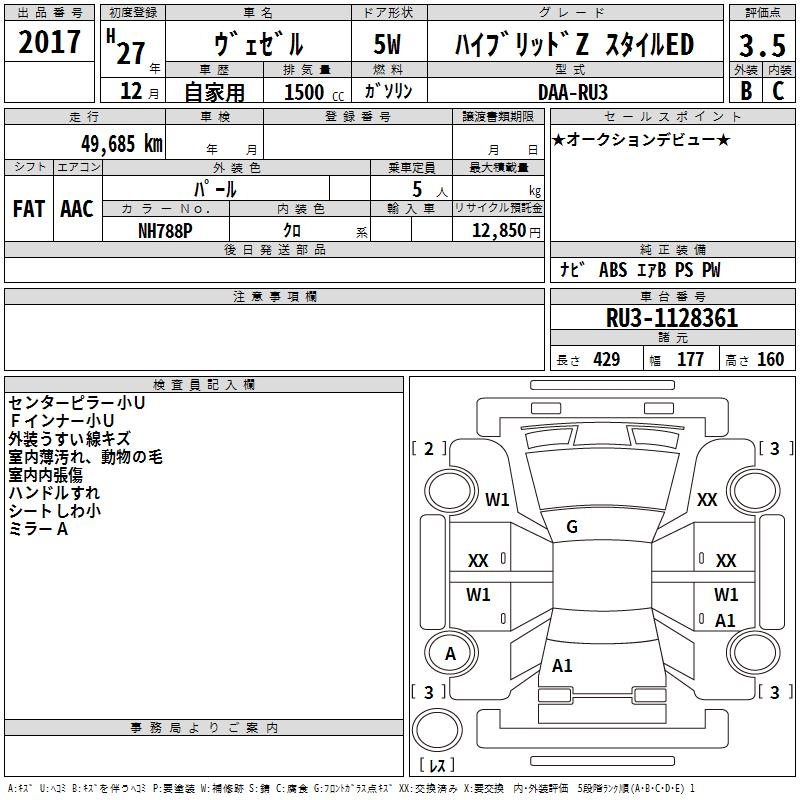HONDA VEZEL - лот 2017