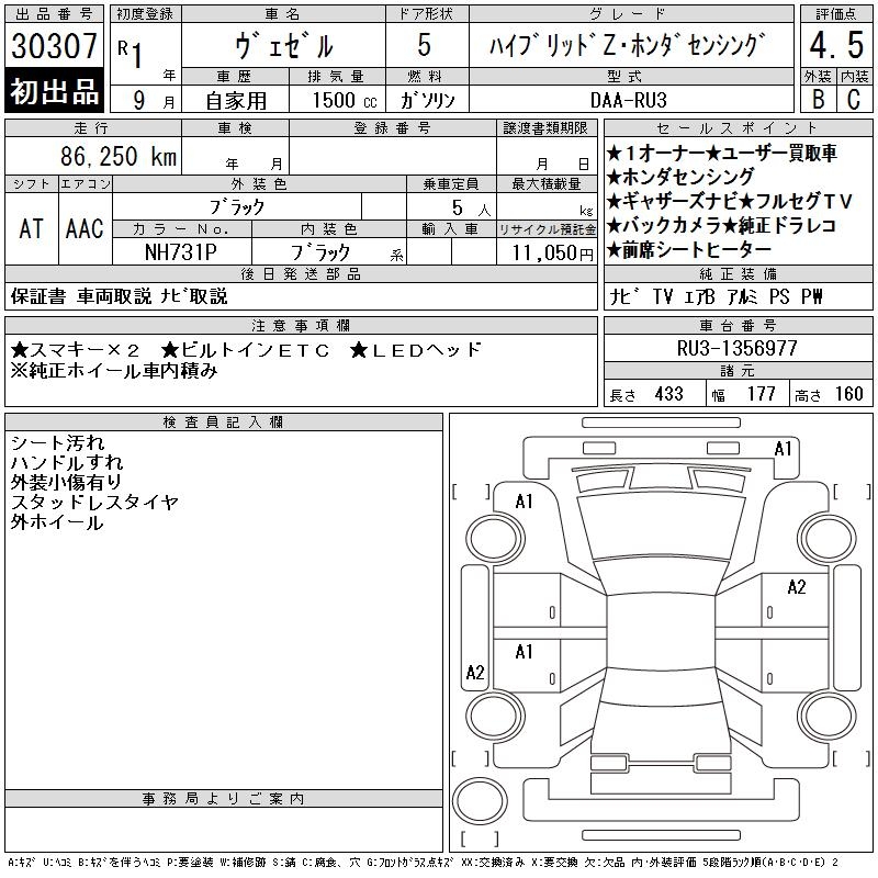 HONDA VEZEL - лот 30307