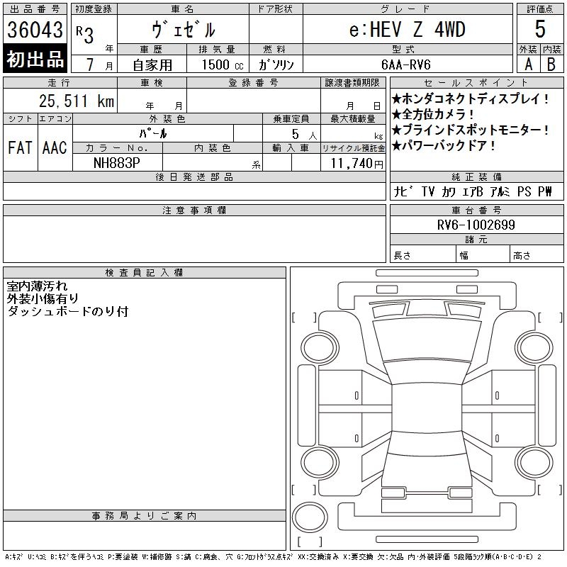 HONDA VEZEL - лот 36043