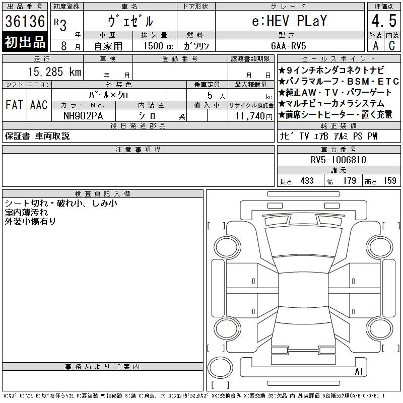 HONDA VEZEL - лот 36136
