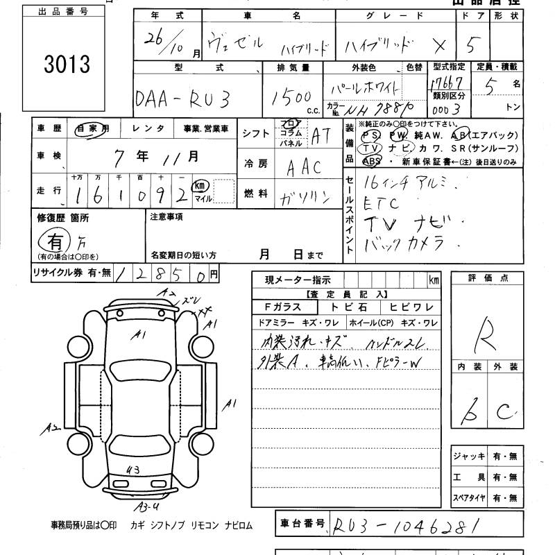 HONDA VEZEL - лот 3013