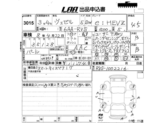 HONDA VEZEL - лот 3015
