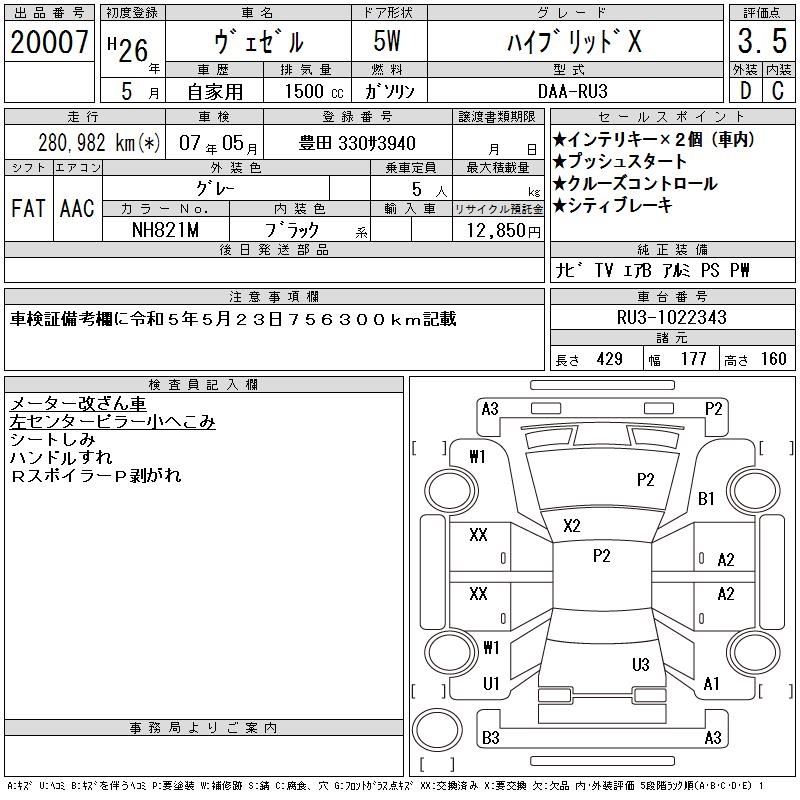 HONDA VEZEL - лот 20007