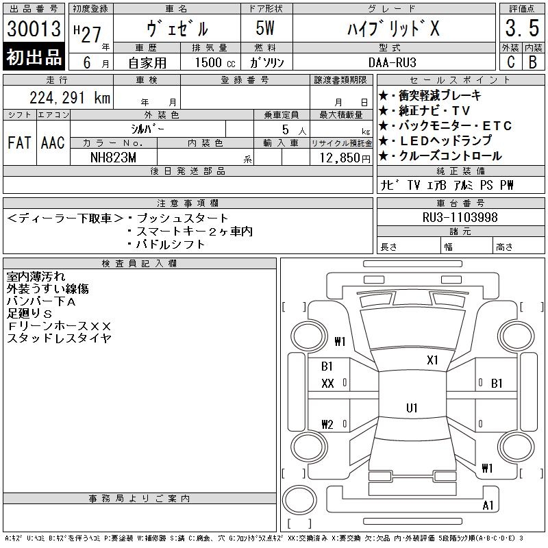 HONDA VEZEL - лот 30013