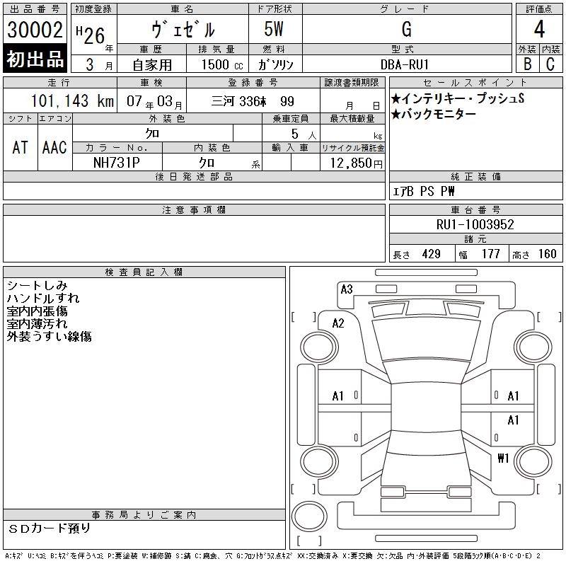HONDA VEZEL - лот 30002