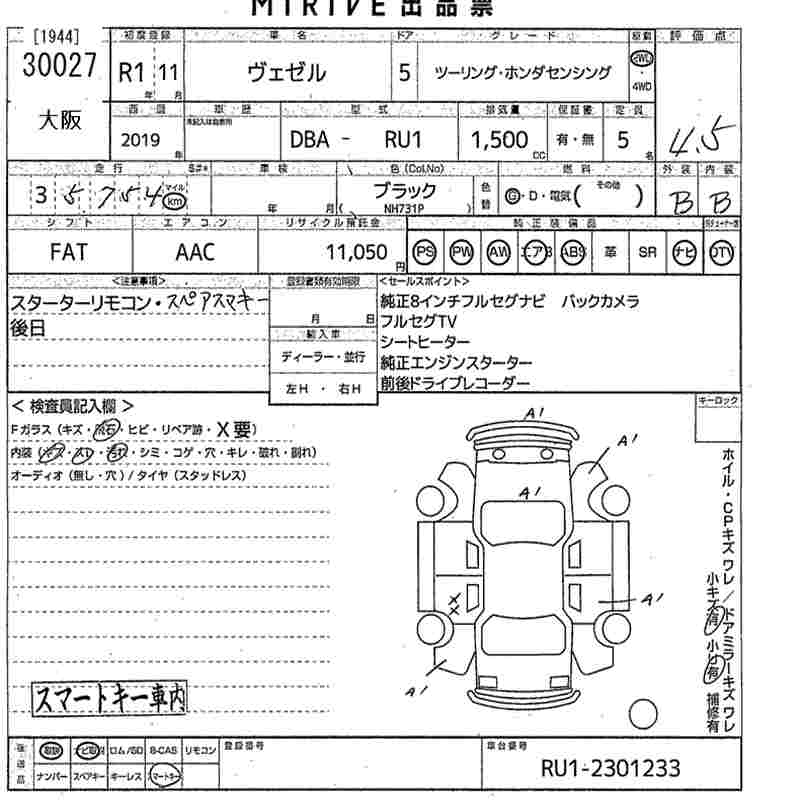 HONDA VEZEL - лот 30027