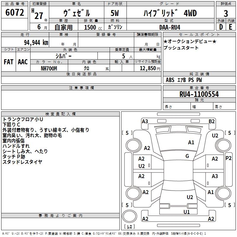 HONDA VEZEL - лот 6072