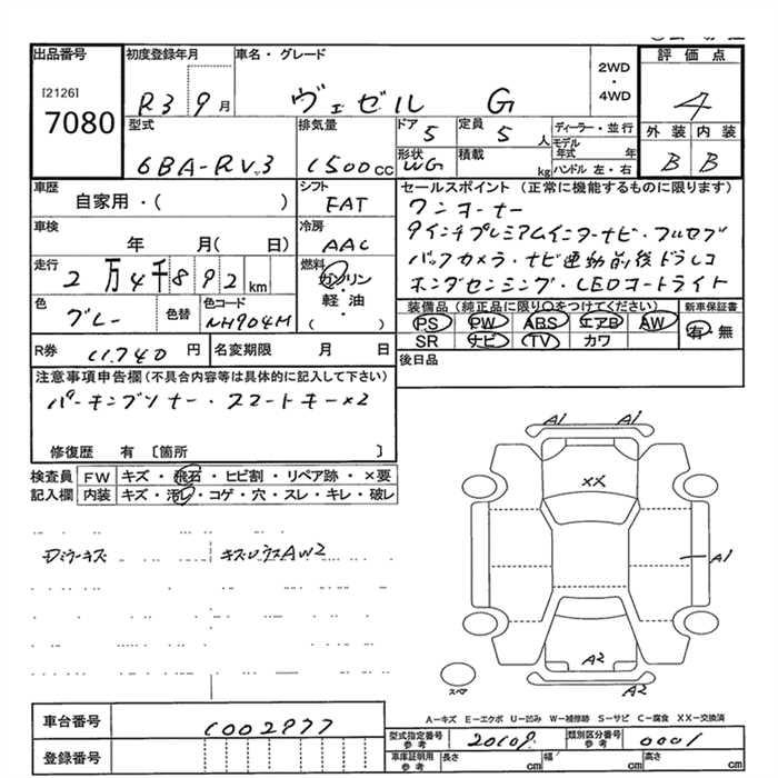 HONDA VEZEL - лот 7080
