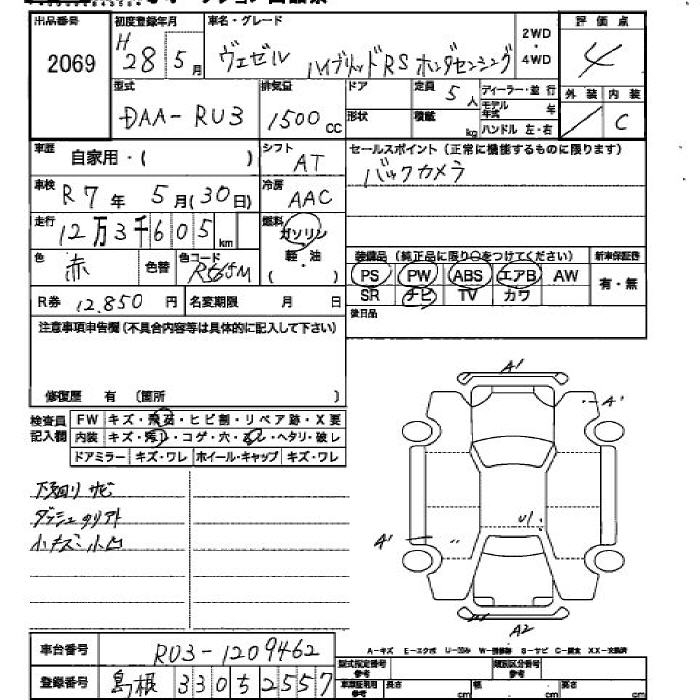 HONDA VEZEL - лот 2069